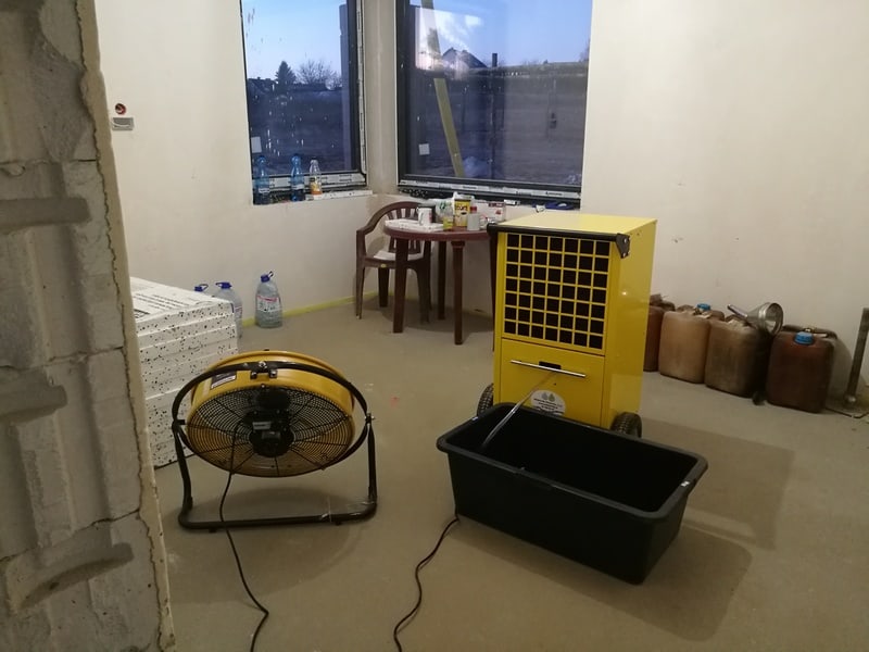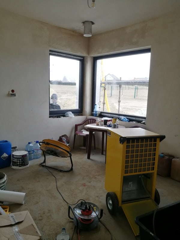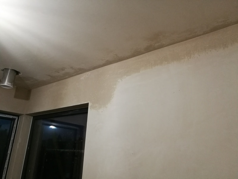 Otrzymaliśmy zgłoszenie od Pana Pawła. Problem polegał na tym, że tynki gipsowe wyglądały na suche, natomiast w miejscach elementów żelbetowych ciągle skraplała się woda. Po ilości zebranej wody można stwierdzić, że tynki tylko sprawiały wrażenie suchych.